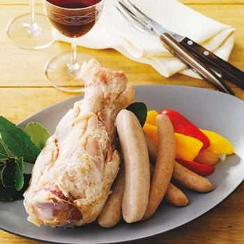 ドイツ伝来の技で茨城県産豚肉の旨みを引き出したアイスバインとホワイトソーセージ。